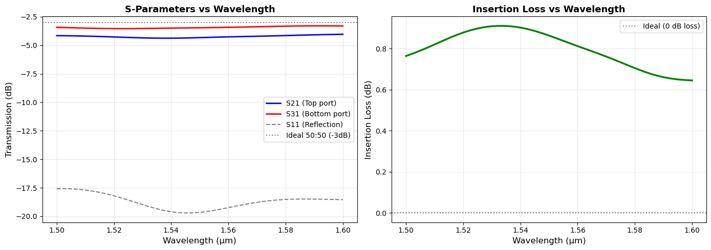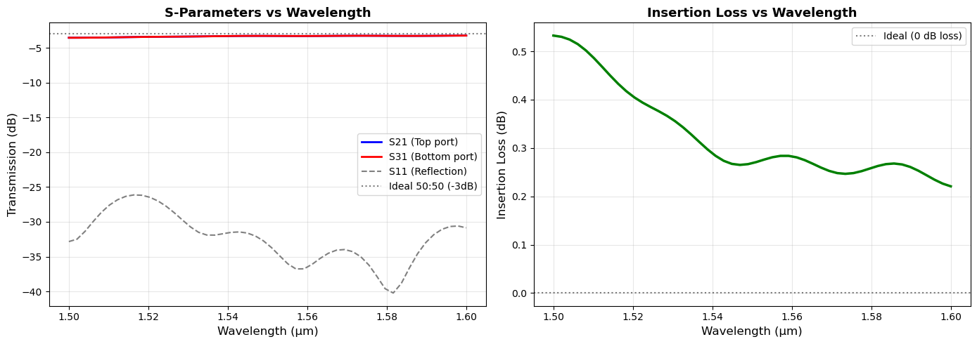print(f" S31 (to bottom port): {S31_dB:.2f} dB ({T31:.4f} or {T31*100:.2f}%)")