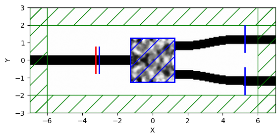 s_ybranch = gm.write_sparameters_meep_mpi(